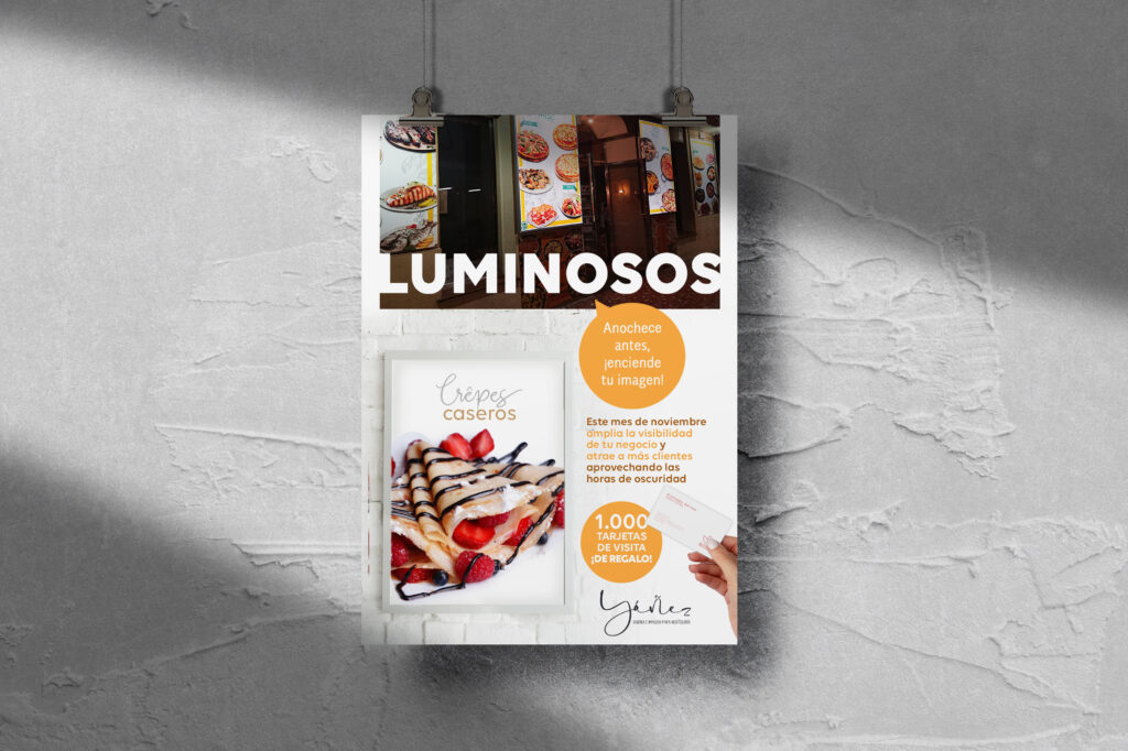 En Yañez – diseño e imagen para hostelería – sabemos que un rótulo luminoso bien diseñado puede marcar la diferencia entre pasar desapercibido o captar nuevas miradas. La iluminación comercial no solo mejora la visibilidad exterior de tu negocio, sino que también transmite profesionalidad, confianza y una imagen cuidada de tu marca.